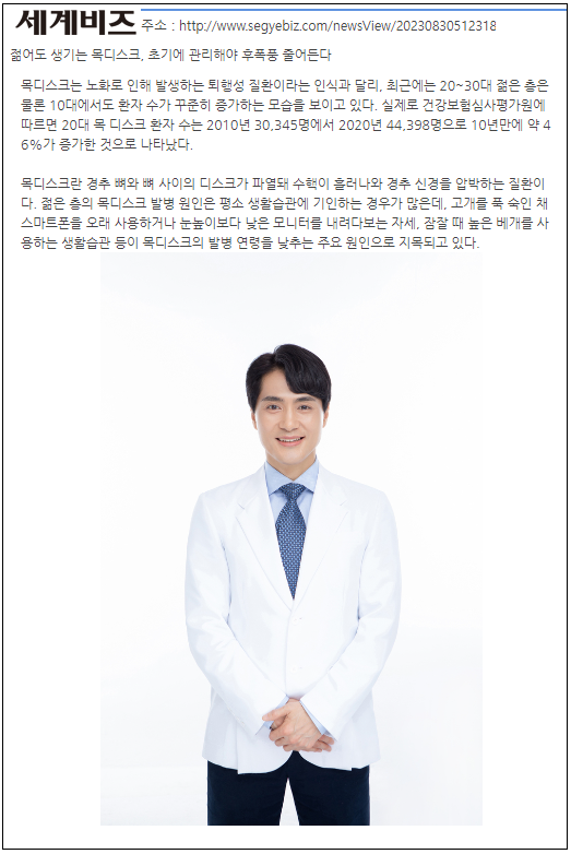 목디스크는 노화로 인해 발생하는 퇴행성 질환이라는 인식과 달리