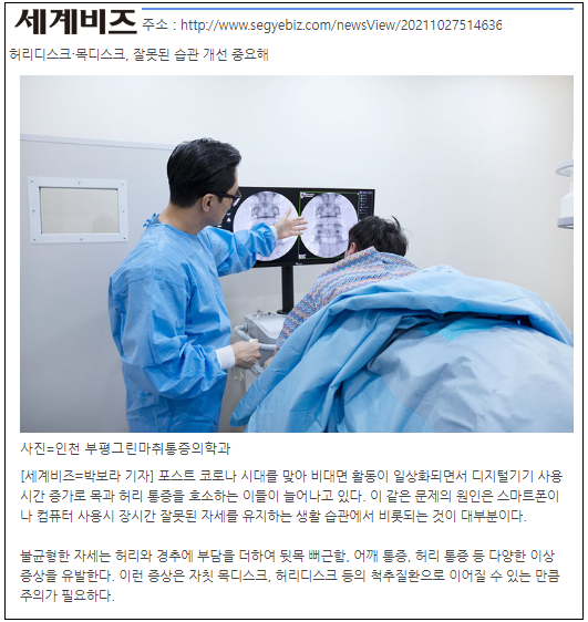전문의 3인 협진진료 부평그린마취통증의학과에서