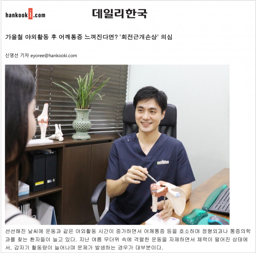 [칼럼] 가을철 야외활동 후 어깨통증 느껴진다면? '회전근개손상' 의심