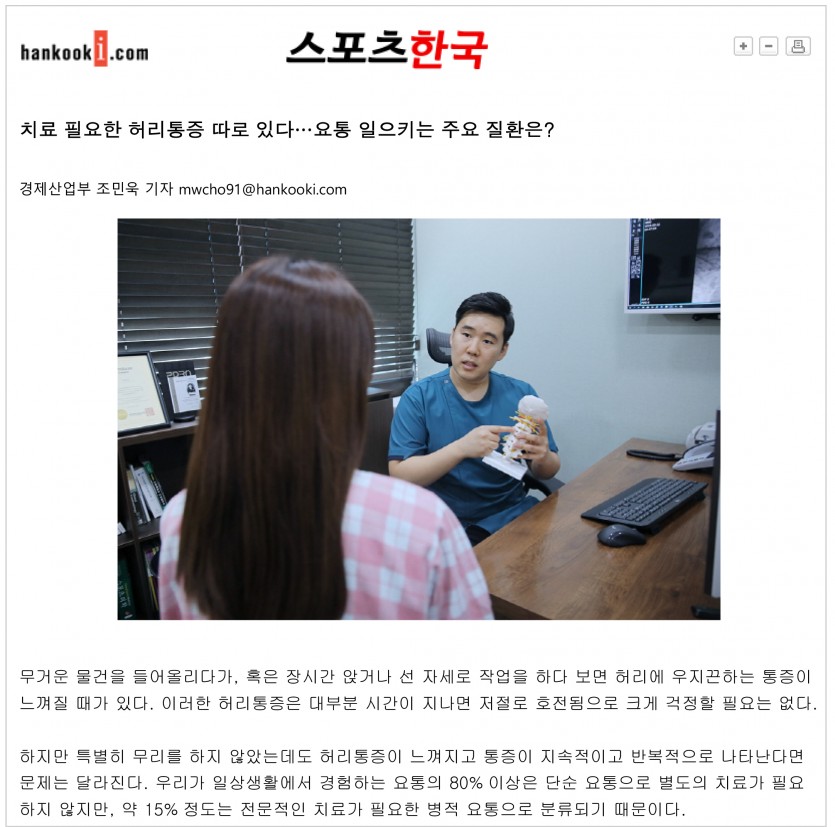 허리통증에 관한 김병운 부원장님의 의학칼럼을 소개합니다.