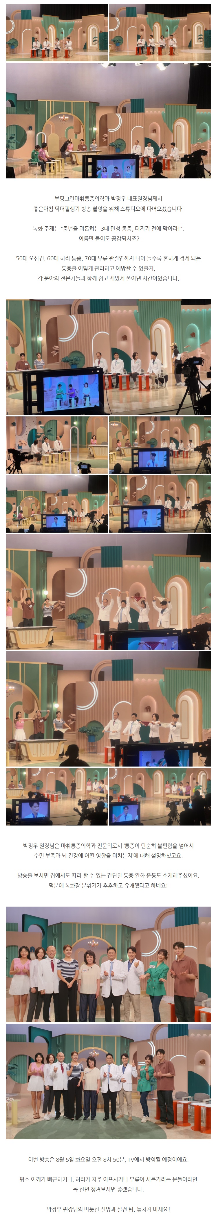 [공지사항] 부평그린 박정우대표원장님 좋은아침 닥터필생기 출연 (방송일 8월 5일 화요일) 작성일 : 2025.07.24 부평그린마취통증의학과 댓글 : 0 조회 : 444 부평그린 박정우대표원장님 좋은아침 닥터필생기 출연 (방송일 8월 5일 화요일)